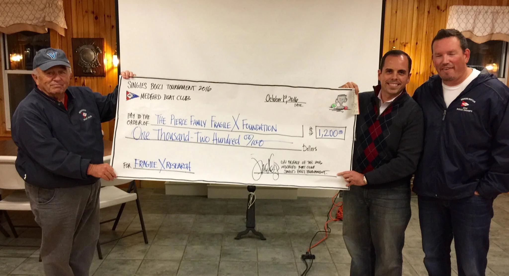 Thank you to the Medford Boat Club Men's Bocce Team for donating $1,200 to our foundation. My father and I graciously accepted that donation last evening during their year-end dinner. The MBC and its members have donated over $10,000 this summer towards helping us find a cure. Thank you for being part of our village.